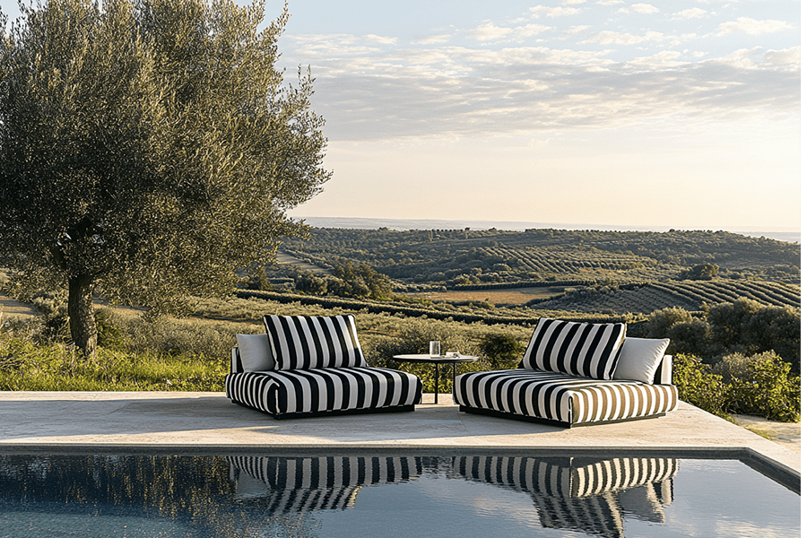 Une version moderne de la rayure de jardin, qui continue à faire son chemin avec ses nouvelles couleurs d’inspiration vintage, Agora® Lines évoque le charme serein des jours de plage méditerranéenne et la chaleur des souvenirs intimes. Idéal pour ajouter une élégance rétro à tout espace extérieur.
